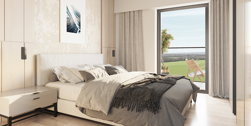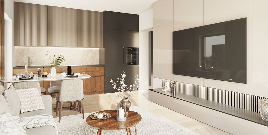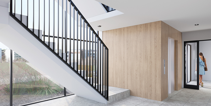 Nowoczesny design budynku, podkreślony subtelnymi kolorami elewacji, nadaje inwestycji lekkości i współczesnego charakteru. Duże okna oraz przestronne balkony i tarasy gwarantują doskonałe doświetlenie wnętrz, tworząc przyjazną atmosferę pełną naturalnego światła.